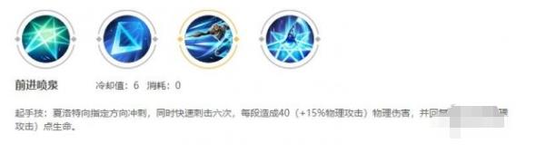 起手技:夏洛特向指定方向冲刺,同时快速刺击六次,每段造成40(+15%物理攻击)物理伤害,并回复27(+7%物理攻击)点生命。
