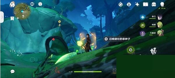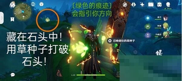 〔提醒:草种子附近会有绿色的痕迹指引,根据痕迹寻找相应机关,可以使用【元素视野】确认方向和位置〕