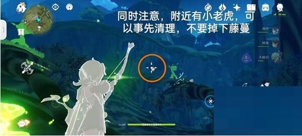 拾取解密地点藤蔓上的【健壮的草种子】用弓箭击打【三处机关】,其中两处是藏在石头中的。