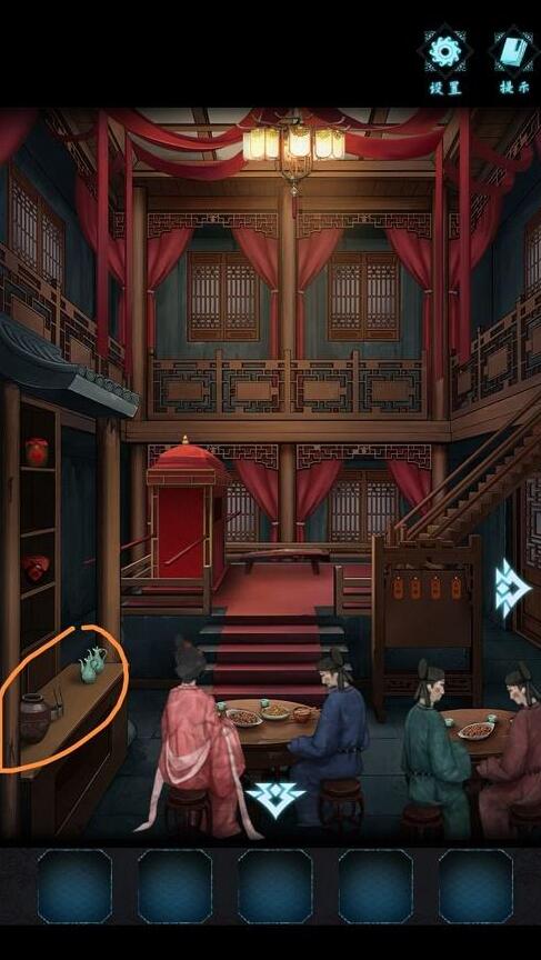 3、用木制扳手启动盒子,按图中顺序点击得到提示纸。