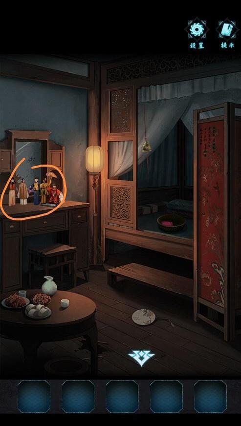 4、点击石桌上的字,根据刚刚到提示得到门锁密码如图,把密码输入门锁进入房间。