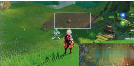 1、来到如下图所示的位置触发解谜过程,如缘觉塔边上的苗圃里,完成解谜获取宝箱;