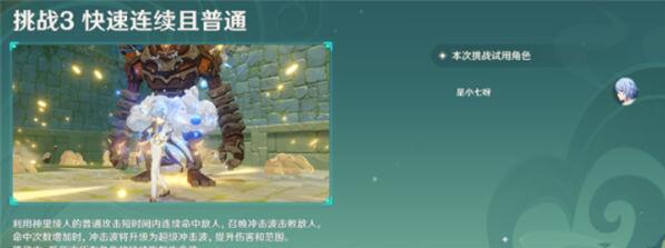 原神冒险家试炼第五天怎么过?冒险家试炼是原神游戏中最近开放的一个限时活动玩法,在活动期间每天都会开启一个新的挑战关卡,到今天已经将5个关卡全部开启,冒险家试炼第五天的挑战中依然分为了几个小挑战,每个挑战都有指定的角色,玩家只有在全部通过之后才可以领取到相应的奖励,目前还有不少玩家不知道冒险家试炼第五天应该要怎么过,所以下面小编就给大家带来了原神冒险家试炼第五天通关攻略,有需要的小伙伴快和小编一起来看看吧。