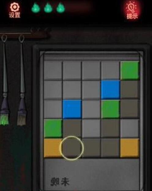 16、玩家需要在画室点击画就能找到线索,然后来到小房子点击柜子左侧的图案,将毛笔放上去,然后按照下图的位置画即可解锁。