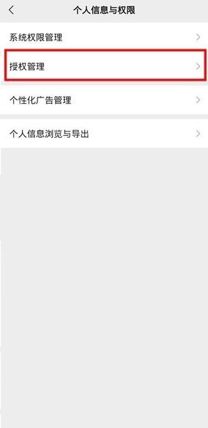 2、然后找到个人信息与权限-授权管理。