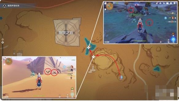 2,饱饮之丘旁的绿洲,先从神像绕到山的北部,在悬崖边
