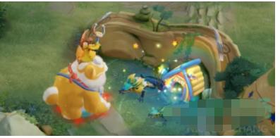 随着二技能的释放,大黄狗球球会拖着水花疯狂的翻滚,停下来之后会出现彩虹的技能特效;
