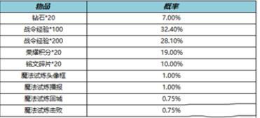 兑换次数:赛季限购120次,累计120次必得魔法试炼系列全部局内特效及头像框;