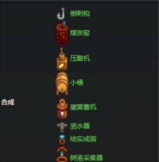 1、合成倒刺钩、煤炭窑、压酪机、小桶、蛋黄酱机、洒水器、结实戒指、树液采集器;