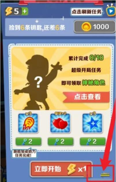 1、我们只需在游戏结束后点击右下角的双向箭头即可切换地图。具体方法如下:首先打开地铁跑酷游戏,点击开始游戏进入开局。