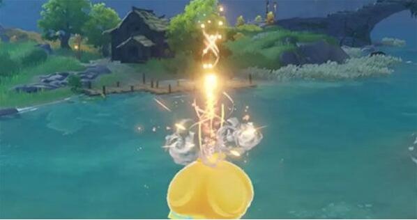 4、靠近「烟花果实」后,可以借助烟花的力量,迅速跃升至一定高度,并在跃升的最高点自动 展开风之翼。