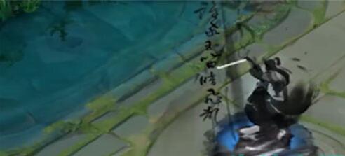 一技能释放可以在原地触发黑色人影,在幽蓝寂静的水面上吹奏笛子,边上有歌词文字展示,意境很高;