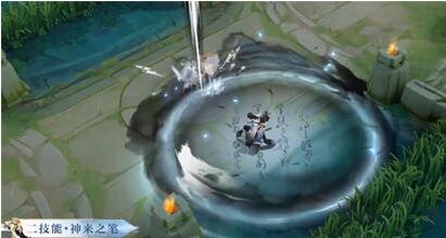 二技能释放的特效是两个黑白的笔影像太极阴阳一样旋转着,周围是一圈墨水,中间是一些诗句,其特效不亚于李白的最佳皮