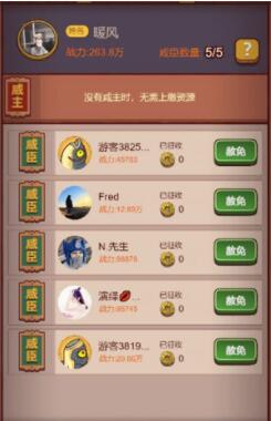有人肯定会问了,这个咸臣有什么用处,可以获得你征服的咸臣的百分之10的挂机收益的,相当于多了百分之50的挂机收益,何乐不为呢。但是是需要去征服好友才可以获得这些的,征服好友也是要选择一下的,毕竟只有5个位置,尽量去征服那些收益高一些的才好,也可以随时赦免他们。